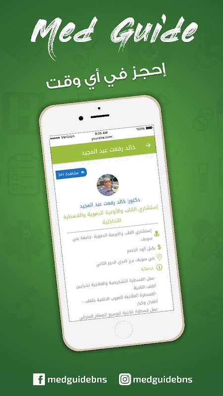 يُمكنك تطبيق ميد جايد من التواصل مع الاطباء ومعامل التحاليل ومراكز الآشعة والصيدليات والمستشفيات في محافظتك من خلال البحث بالإسم او الموقع او التخصص بالاضافة للحجز بضغطة زر واحدة . . ويمكنكم ايضاً الإستمتاع بميزة الخصم التي تصل الي 50 بالمائة علي القيمة المدفوعة عند اي تعامل طبي مع الاماكن الموجودة بالتعاقد بالاضافة الي دليل طبي شامل لأشهر الاطباء في جميع انحاء الجمهورية