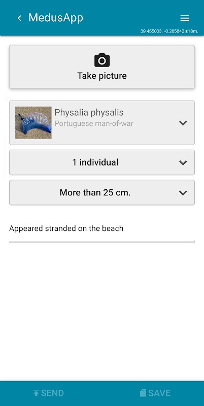 Medusapp을 사용하여 해파리 사진을 촬영하면, 사진을 전송하는 동시에 GPS 좌표도 함께 전송되어 이 해양 생물이 목격된 장소의 실시간 지도를 만들 수 있습니다. 해파리 종을 알고 있다면 더욱 좋습니다. 하지만 그렇지 않더라도 걱정하지 마세요. 과학자들이 이미 해파리 종을 분류할 책임이 있습니다.