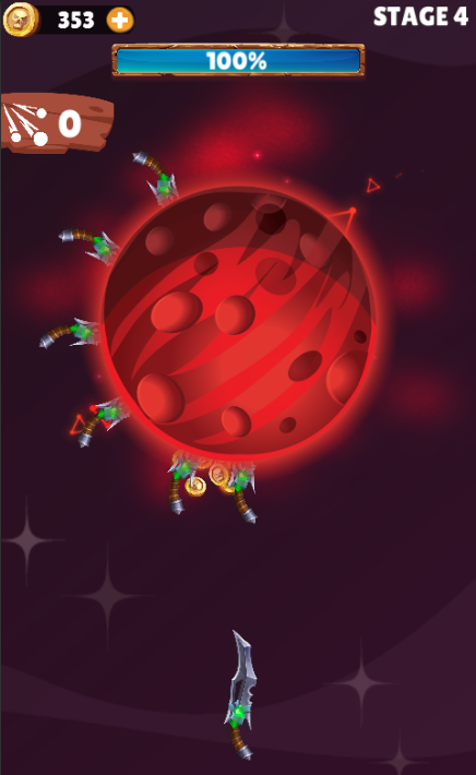 Merge smaller knives to upgrade it to more stronger knife and throw it to clear the levels