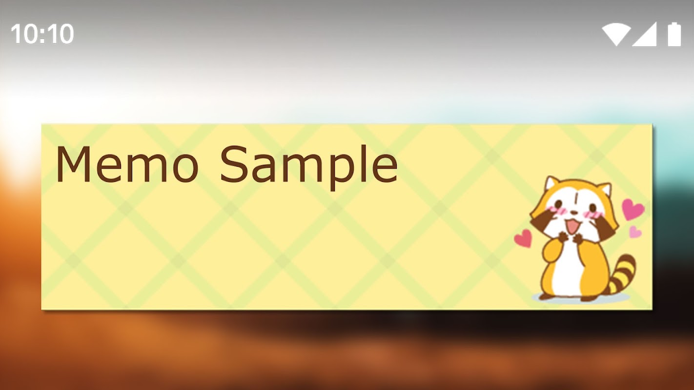 This application is a widget for your home screen and you can enjoy personalizing it. Keep pressing the home screen till an additional menu of widgets appears. Pick out “MEMO PAD araiguma-rascal” from a list of widgets.