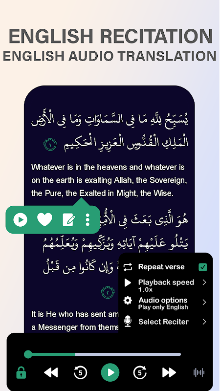 꾸란 마지드 영어 및 읽기, 듣기 및 탐험가 번역