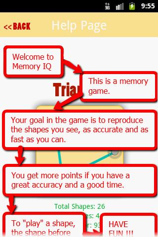 메모리 IQ는 메모리 게임입니다. 사용자 목표는 가능한 한 정확하고 빠른 모양을 재현하는 것입니다.