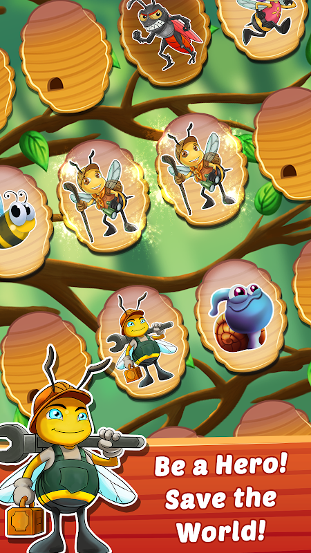 Memory Match is a fast-paced game with a single play game screen where you turn over bee hives to match good bugs. But watch out, evil bugs are destined to get in your way. This Highly Addictive Memory Matching game will quickly be the best matching game on Google Play! To play, turn over two cards to match two good bugs and win gold coins to purchase more characters for your game or gems for your collection so you can rise to the top of the leaderboards. Match two treasure chests three times to go to a treasure screen where you select a chest to win Bee The Swarm Bees or other exciting prizes revealed in this cutting edge memory game!