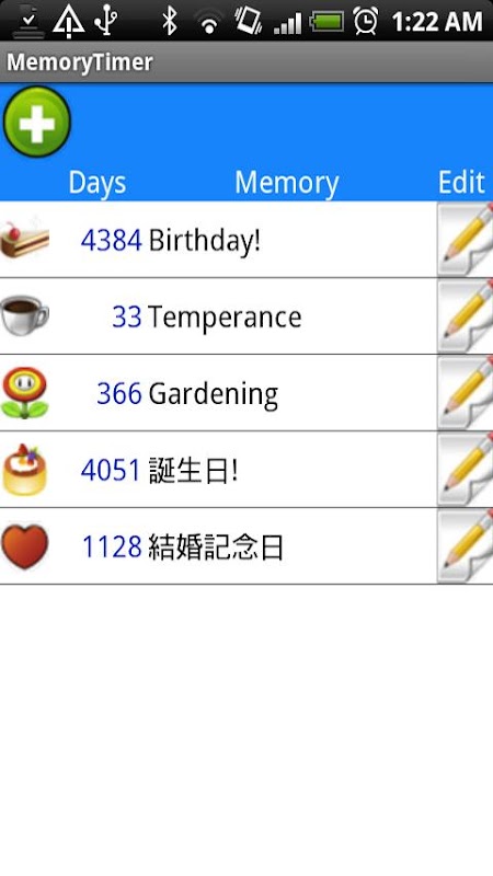 메모리 타이머 내가 메모리의 일에 오늘 (생일 등)에서 전달 얼마나 많은 일 녹음 할 수 있습니다.