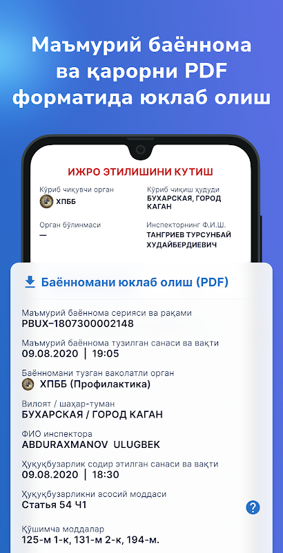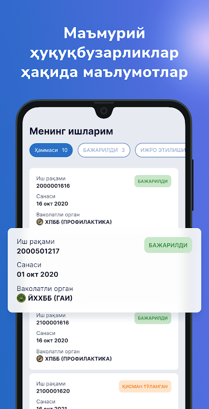📱 Ilovada mamurii hukukubuzarliklaringizni izlash mavjud