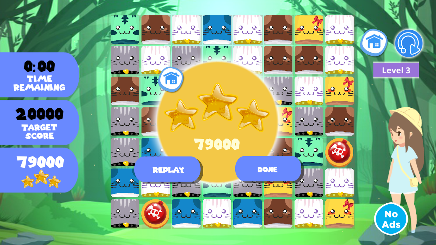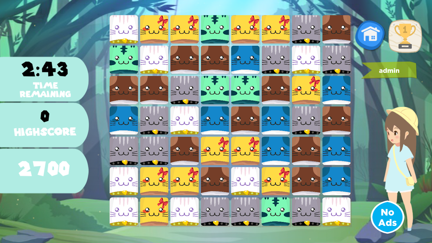 Advance to the next level in this sweet puzzle adventure game. Switch and match animals to experience success!