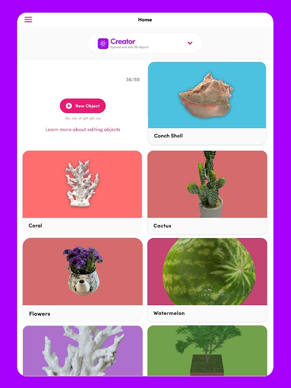 Merge Creator를 사용하면 학생들은 3D 모델을 편집하여 AR을 사용하여 Merge Cube와 실제 세계에 어떻게 나타나는지 결정할 수 있습니다! 크기, 회전을 변경하고 축소판을 편집할 수도 있습니다.