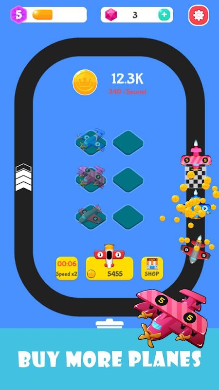Add planes to the Airline to earn more coins, build your own aviation empire.