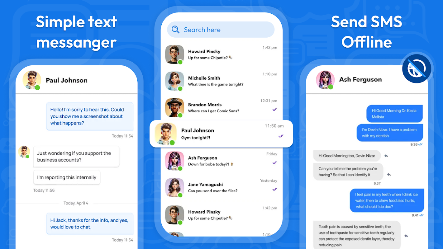 개인적인 이유로든 업무적인 이유로든 문자 메시지를 보내든 이 SMS 앱을 사용하면 작업을 간단하고 효율적으로 유지할 수 있습니다. 복잡한 인터페이스와 불필요한 기능은 이제 그만, 순수하고 빠른 메시징을 즐겨보세요!