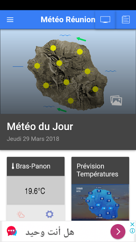 ● Prévisions météorologiques pour demain, avec graphique horaire.