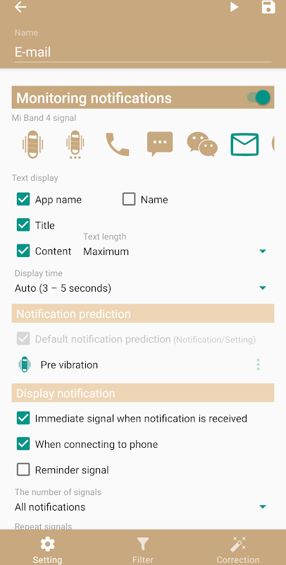 - 밴드에 앱의 알림 내용 표시