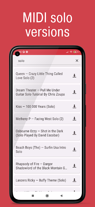 앱에서는 음악 트랙의 원본 버전과 다양한 커버 버전을 찾을 수 있습니다. 유명한 아티스트와 음악 그룹의 노래에서 기타, 타악기, 어쿠스틱, 베이스 및 솔로 파트 등 다양한 버전의 MIDI 음악이 제공됩니다.