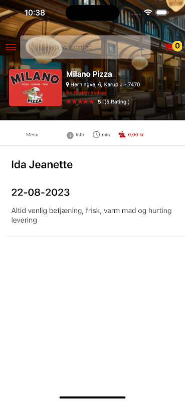 Du kan bruge din eksisterende Milano Pizza / EatOnline brugerprofil, eller som ny kunde oprette dig i appen.