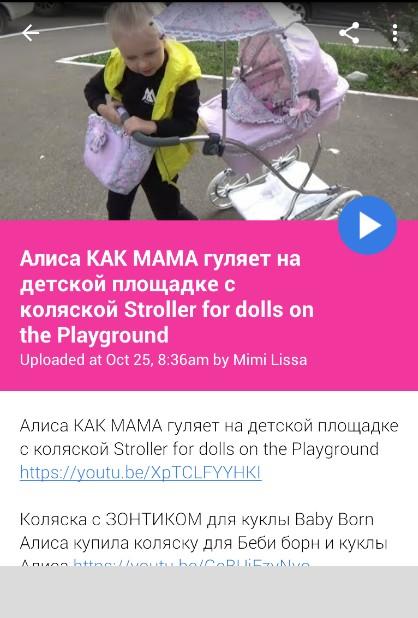 Это канал для детей! [ Çocuklar için bu kanal!] У меня очень много игрушек: Свинка Пеппа Мои маленькие пони Принцесса Диснея Микки Маус Барби и еще очень много игрушек для девочек ) Алиса Мими Лисса очень любит кукол и пони и у нее очень много таких видео и про Беби Борн и про Май Литл пони, еще Алиса обожает открывать киндеры яйца с сюрпризами