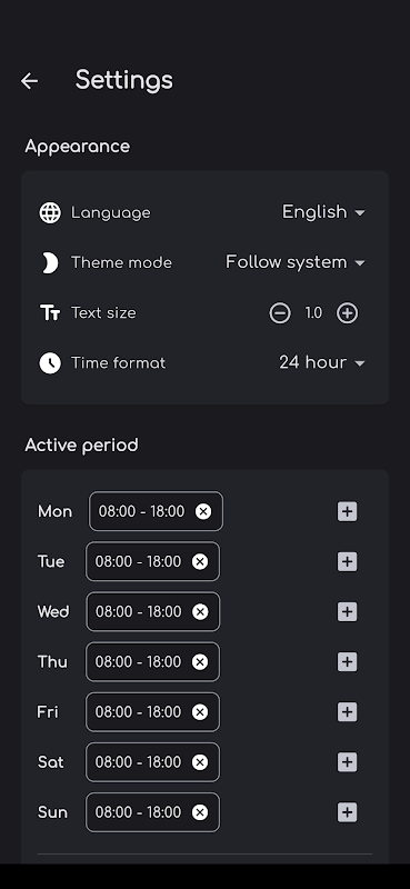 - 유연한 일정: 각 요일에 대해 여러 활성 일정을 만듭니다.