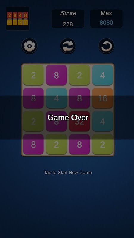 Join the numbers and get to the 2048 Game! Swipe to move all blocks. When two blocks collide with the same number,they merge into one and get scores. Enjoy the 2048 Game,and reach a high score!