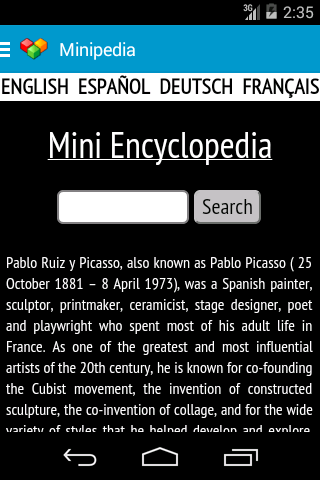 Wikipedia search engine in four languages.