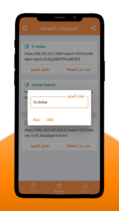 - صفحة المفضلة : بها روابط للفيديو قمت بحفظها سابقا.