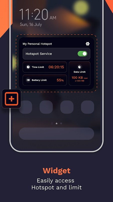 • 빠른 서비스: 위젯 옵션을 통해 더욱 편리하게 핫스팟을 켜고 끌 수 있으며, 설정된 사용량(시간, 데이터, 배터리)을 즉시 확인하여 편리한 사용 환경을 제공합니다.