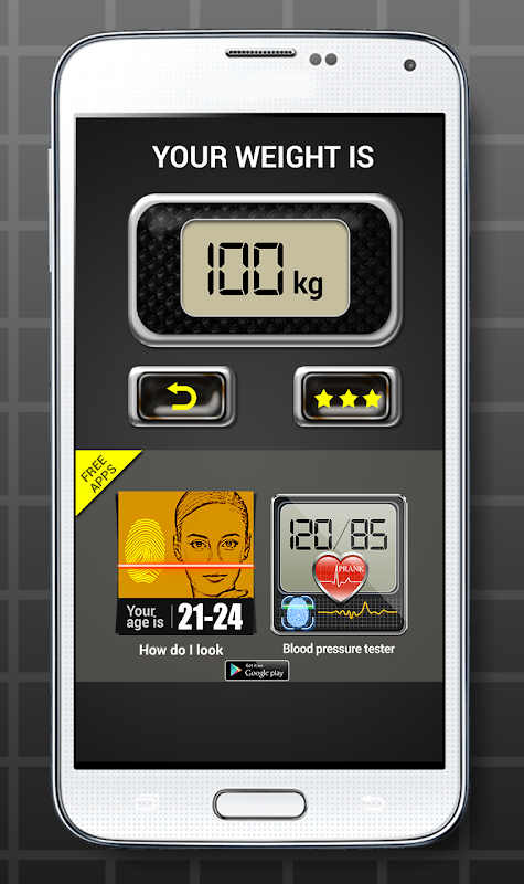Mobile weight machine scans your body weight using finger prints.How much you weight! now detects it using your mobile phone,mobile weight machine is an awesome digital scale app for android mobile which simply determine and calculate your body weight.