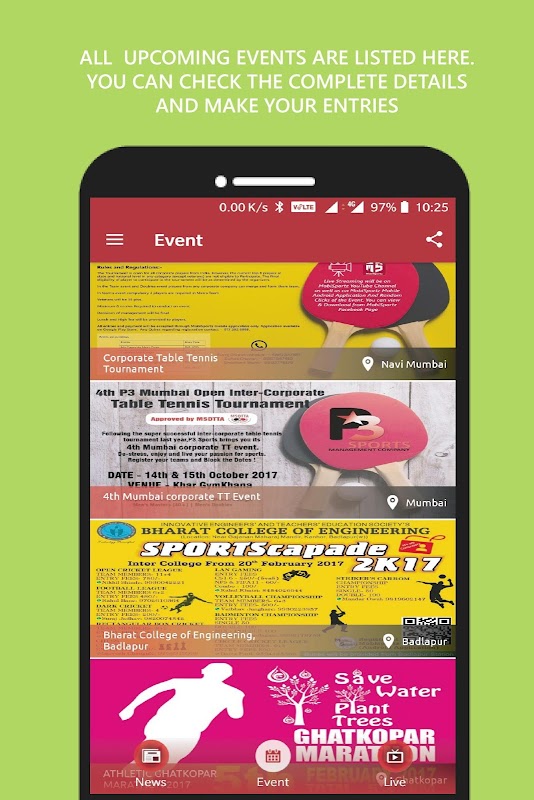 이벤트 또는 스포츠 주최자하여 응용 프로그램의 개발에 참여, 자신의 이벤트를 추가 할 수 있습니다.