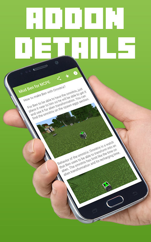 Mod Ben for MCPE는 Ben 10 애드온을 Minecraft Pocket Edition에 쉽게 설치할 수 있도록 도와줍니다! 1-Click Install을 사용하면 한 번의 탭으로 Minecraft PE 게임에서 Ben 10 Mod를 빠르고 쉽게 다운로드하고 설치할 수 있습니다! 다운로드 시간 절약, 친구 및 가족과 함께 즐기는 더 많은 시간 :)