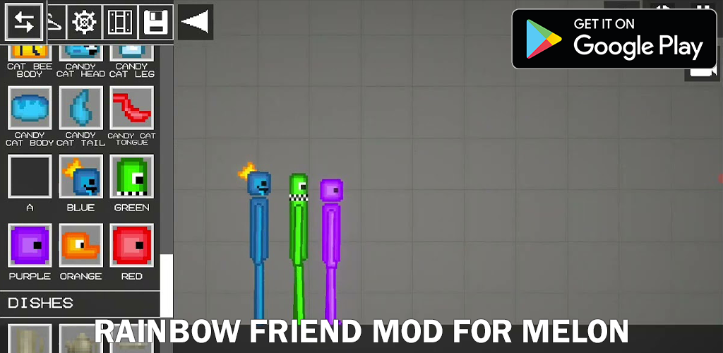 당신의 창의력을 최대한 발휘할 수 있도록 다양한 멜론 플레이그라운드용 레인보우 프렌즈 모드를 받으세요.
