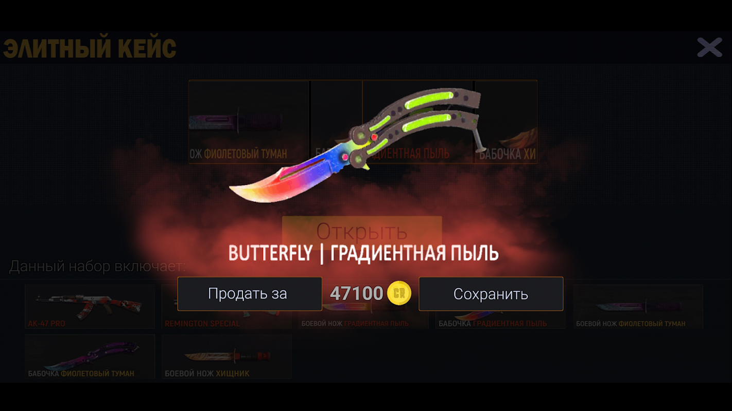 이 게임에는 인기있는 게임의 모든 무기가 있습니다. 일반적인 상자와 케이스 외에도 가장 비싼 무기가 숨겨져있는 비밀 케이스가 있습니다!