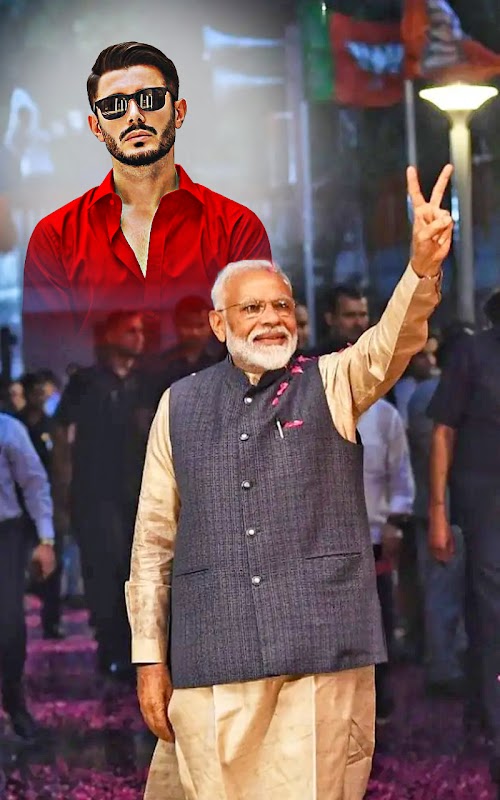 배경: 사진의 배경을 쉽게 변경하세요. 모디 배경이나 정치적 사건 중에서 선택하세요.