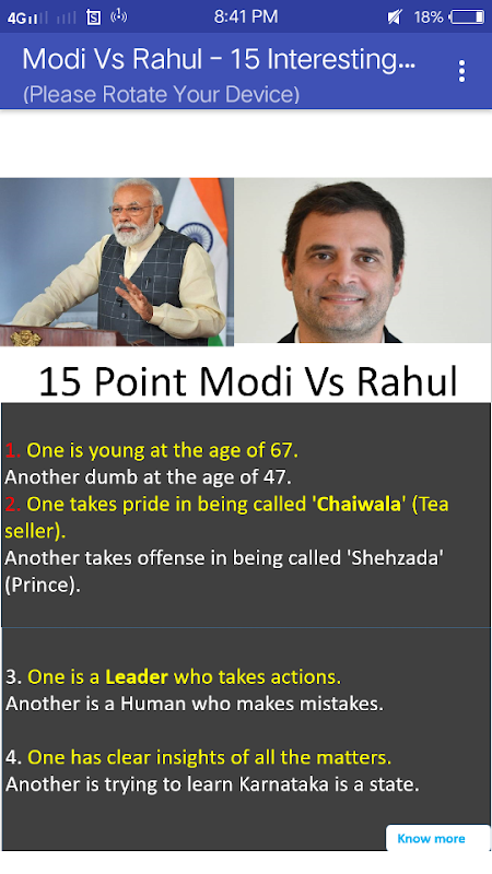 Modi Vs Rahul - 15 Interesting Points apk 정보