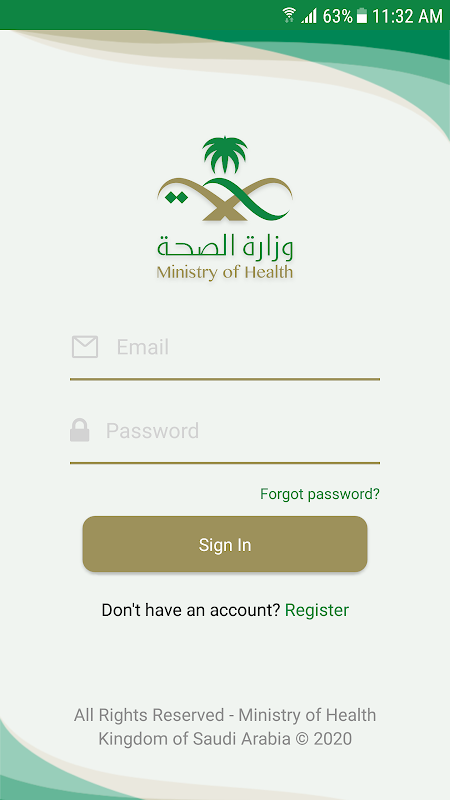 “SAUDI MOH 공식 응용 프로그램은 SAUDI MOH 등록 사용자의 독점적 사용을위한 것입니다”.