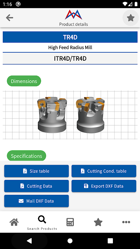 MOLDINO의 공구 검색 및 절삭력 계산 앱.