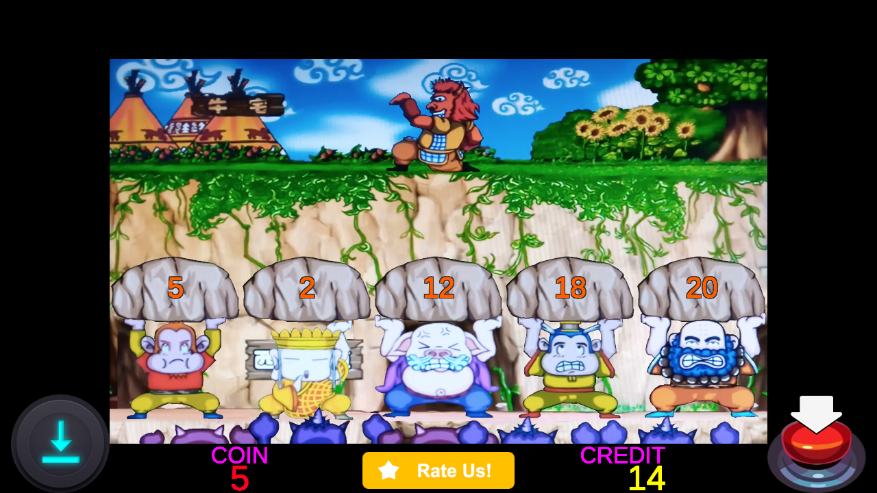 - 슬롯에 동전을 넣습니다. 각 동전은 바위입니다. 바위가 많을수록 Tang Tang과 그의 제자(Sun Wukong, Zhu Bajie, Dragon Prince 및 Sha Wujing)를 잡기가 더 쉽습니다.