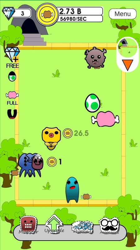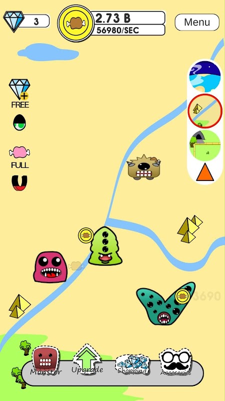 Every monster generates gold coin, but you can tap to help them generate coin faster, as you create more and more monster and make them evolution, they will even generate more coin for you, Feed them with fatty Human to make them generate more coin.