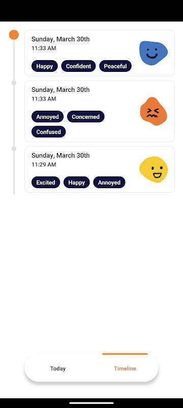 당신의 감정을 즉시 포착하세요. 타임라인에서 기분 여정이 펼쳐지는 것을 확인하세요