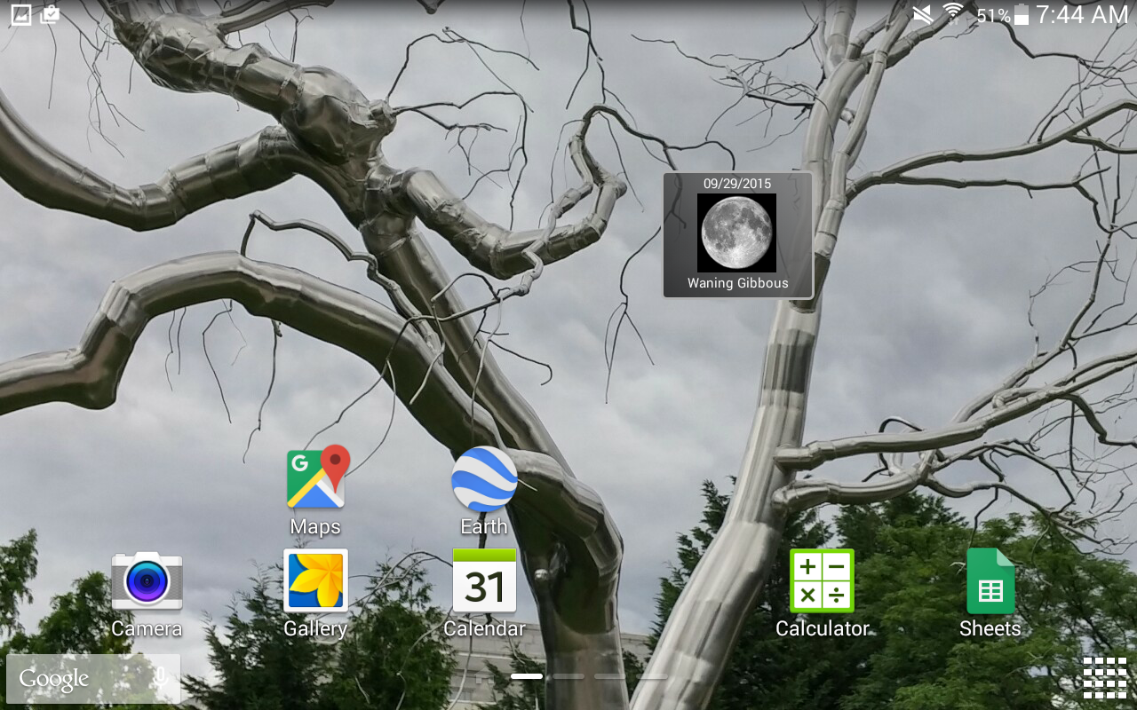 오늘 날짜를 기준으로 달의 현재 단계의 그래픽을 표시하는 매우 간단한 위젯.