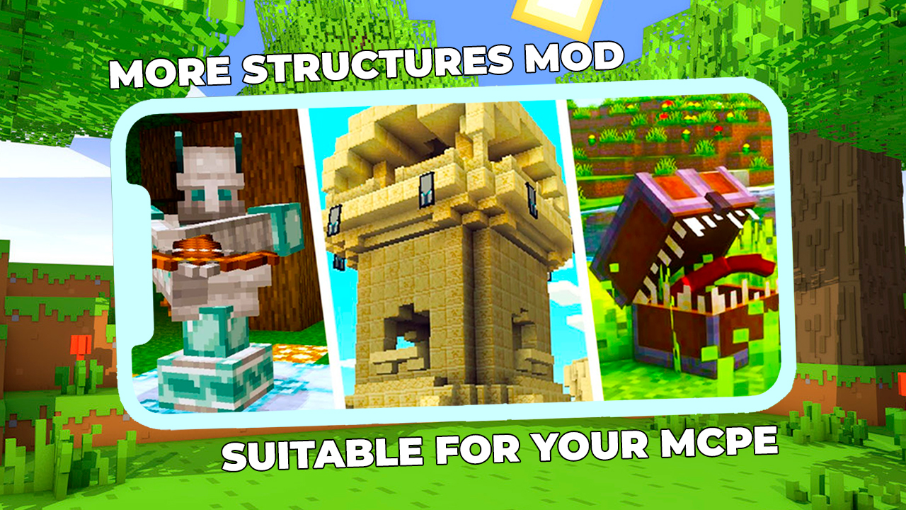 ❗Minecraft PE용 추가 구조 모드❗😋는 멋진 애드온을 추가합니다. 놀라운 몬스터 맵 텍스처와 기능으로 MCPE 게임을 영원히 다양화할 수 있는 좋은 기회가 될 것입니다!😀