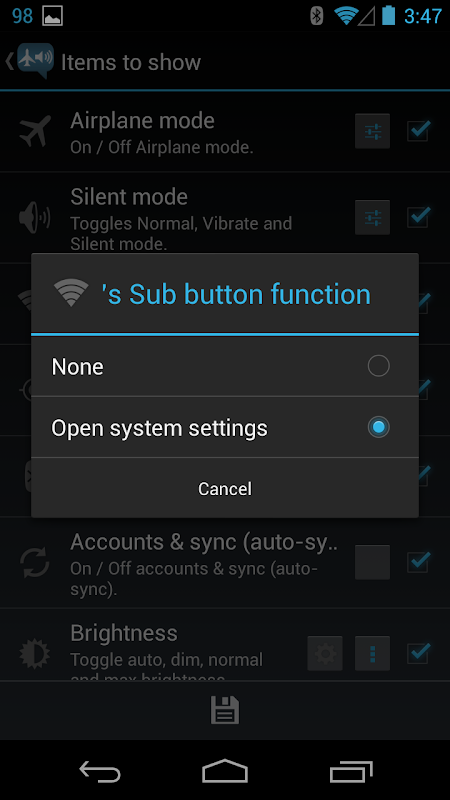 안드로이드 4.0 아이스크림 샌드위치 이상 MoreQuicklyPanel 전체 기능을 수행한다.
