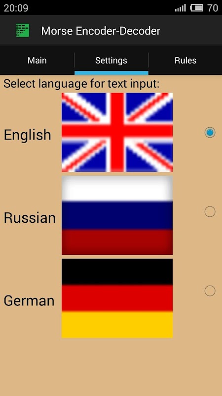 Аpp는 여러 언어를 지원합니다 : 영어, 러시아어, 독일어.