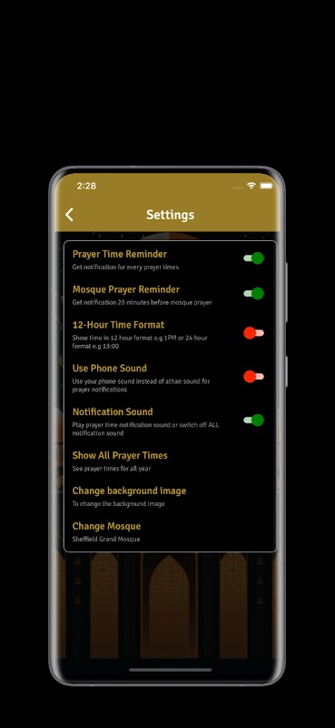 모스크 기도 앱을 사용하면 각 모스크에서 특정 기도 시간을 표시할 수 있습니다.
