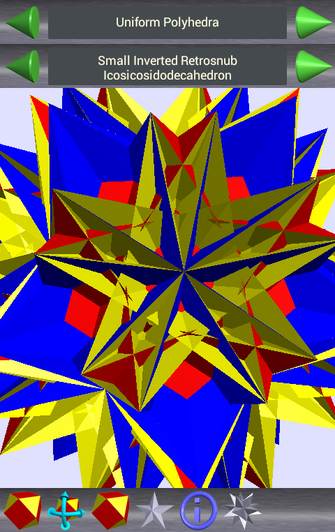 네가가는 모든 곳에서 당신과 함께 다면체를 타고! 떨어져 얼굴을 폭발, 3D로 그들을 돌려 자신의 DUALS을보고 다른 몇 가지 방법으로 자신의 DUALS에 다면체 모프. 같은 얼굴, 가장자리와 정점 수, 어디 로버트 웹이 만든 종이 모델의 온라인 사진에 대한 링크를 사용할 수 등의 정보를 표시합니다. 다면체 또는 신성한 기하학의 팬들을위한해야합니다.
