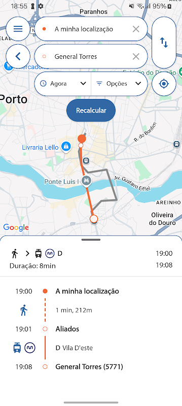 이를 통해 사용자는 가장 가까운 정류장과 다음 여행 및 각 목적지를 시각화할 수 있습니다. 이 쿼리는 사용자의 위치에 대한 액세스 또는 정류장 또는 관심 지점의 텍스트 검색을 통해 수행할 수 있습니다.