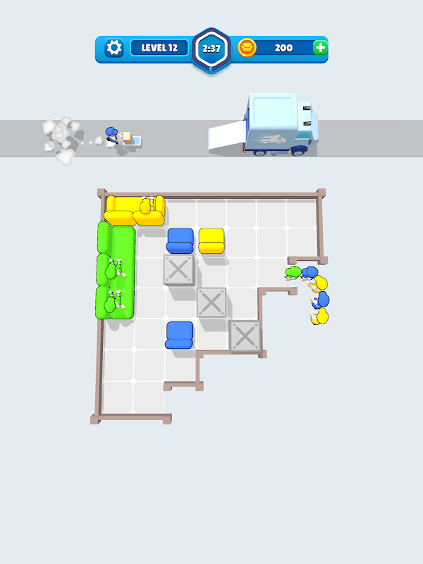 혼란을 처리하고 시간이 다 가기 전에 모든 작업자가 가구에 도달하도록 할 수 있습니까? Moving Jam에 뛰어들어 퍼즐 해결 능력을 뽐내세요!