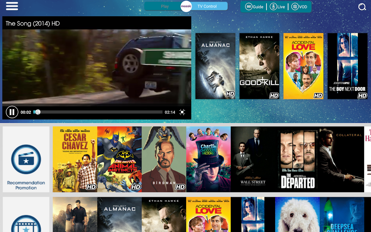 Watch your favorite videos, TV series and programs on the move with Mozaic GO.