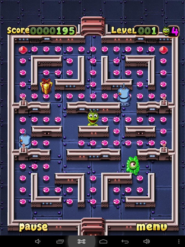 Robots and aliens try to capture Mr Candy. Try to scape eating all the candies available in all stages.