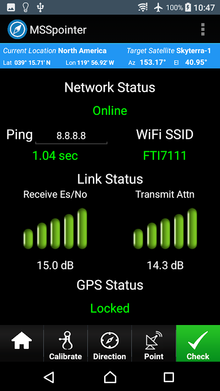 MSSpointer guides you through the process of pointing your fixed site terminal at the optimal MSS satellite for your current location. This will allow you to achieve maxmimum performance from the MSS network.