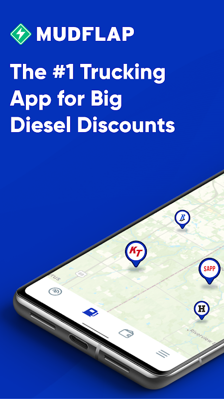• 디젤 할인을 받으려면 Mudflap 트럭 휴게소를 선택하고 직불카드 또는 신용카드를 등록한 후 앱에서 연료 할인 코드를 받으세요.
