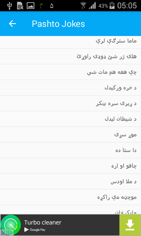 물라 Nasruddin (Mollah Nasruddin) 안드로이드 응용 프로그램은 파슈토어, 페르시아어와 영어로 자신의 농담의 전체 컬렉션이 있습니다. 파슈토어와 페르시아어 농담은 기본 스크립트에있는 오른쪽에서 왼쪽으로 정렬됩니다. 응용 프로그램은 또한 즐겨 찾기 목록에 농담 (들)을 추가하고 다시 찾을 때 즉시 액세스 할 수 좋아하는 기능이 있습니다. 우리 팀은 쉽게 사용자가 쉽게 소셜 네트워크에 문자 메시지 또는 공유를 통해 농담을 공유 할 수했다. 응용 프로그램은 전체 응용 프로그램에 대한 선택 스타일 (테마)의 다수 포함되어 있습니다.