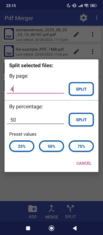 유용한 응용 프로그램은 병합 여러 PDF 파일을 분할하는 단계;