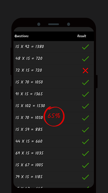그것은 무제한 레벨을 가지고 있으며, 제시된 질문으로 완성되면 앱이 자동으로 다음 레벨로 안내합니다. 현재 대부분의 질문은 곱셈을 기반으로하지만 몇 가지 유형의 문제를 추가합니다.